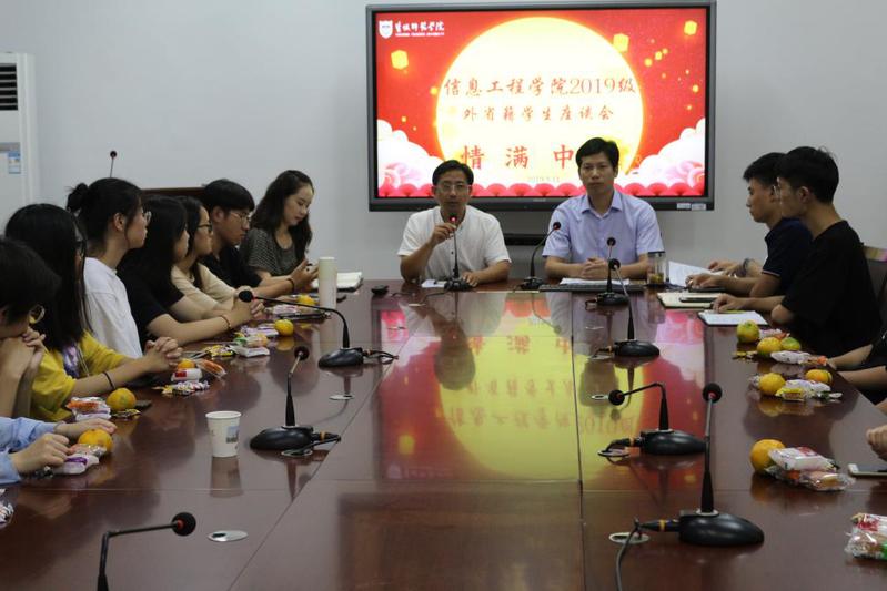 9月11日下午,信息工程学院于学院会议室举办“情满中秋”外省籍新生主题座谈会。党总支书记殷凤春,党总支副书记、副院长赵任凭,部分辅导员和2019级外省籍40名新生一起参加座谈会。会议由赵任凭主持。