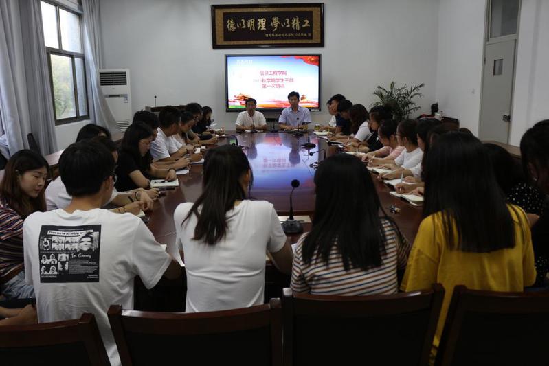9月11日下午,信息工程学院于5号楼会议室召开2019秋学期学生干部第一次培训专题会议。培训由党总支书记殷凤春主讲,全体辅导员和今年新选任的学生干部参会。会议由党总支副书记、副院长赵任凭主持。