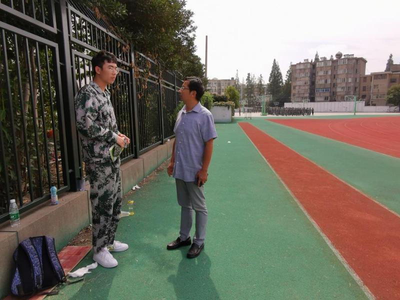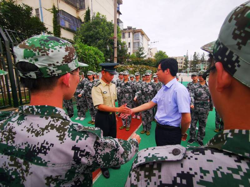 殷凤春与教官一一握手问候,与同学们亲切交流。他详细了解了军训的整体情况,询问军训期间是否遇到困难。他结合自身军训经历,鼓励同学们不畏艰难,严于律己,打造坚强体魄,锤炼坚强品格,以一名军人的标准严格要求自己,为庆祝新中国成立70周年献礼,圆满完成军训任务。