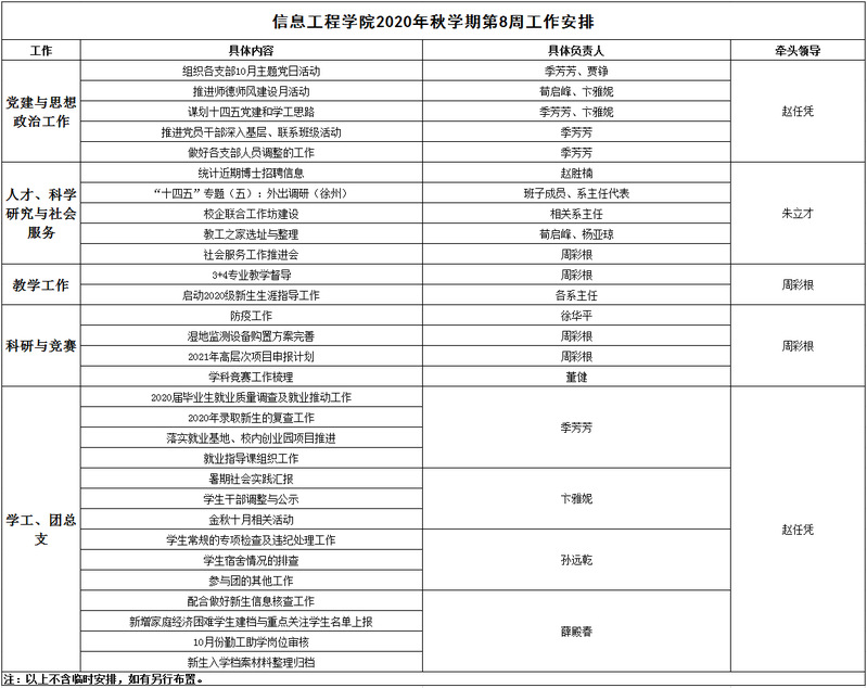 信息工程学院2020年秋学期第8周工作安排