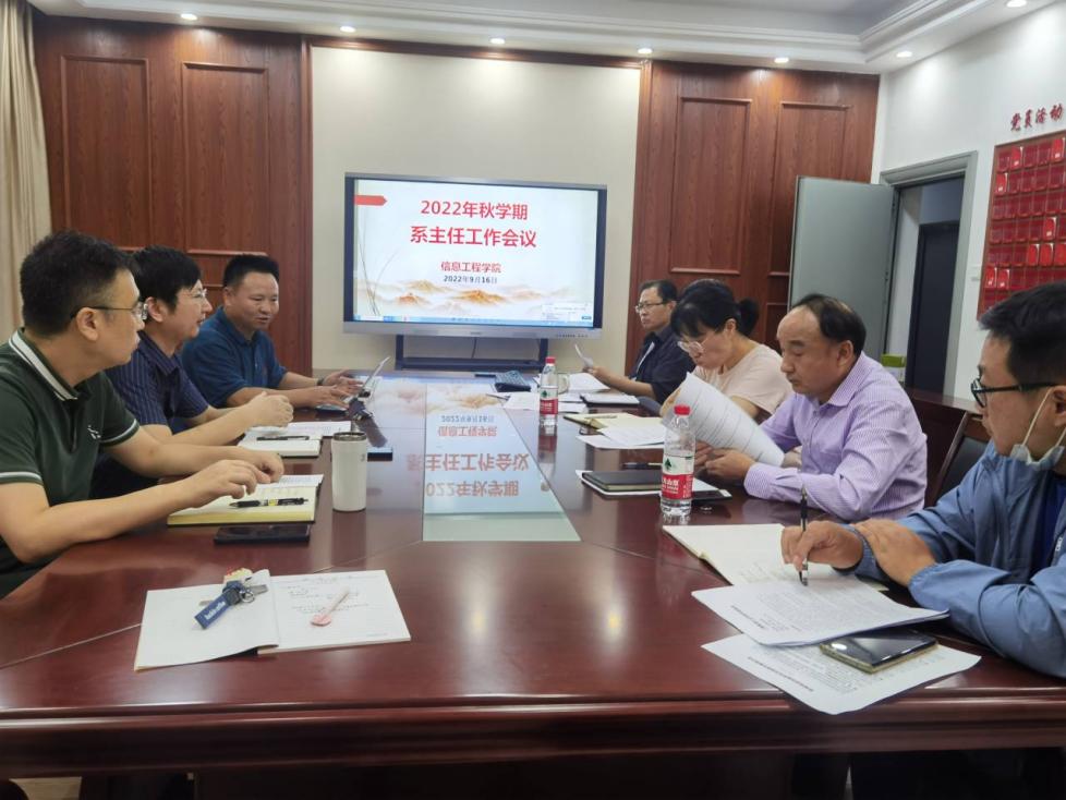 9月16日下午,信息工程学院在党员之家召开系主任工作会议。学院院长朱立才,副院长周彩根及各专业系主任与教研办主任参加会议。会议由副院长周彩根主持。