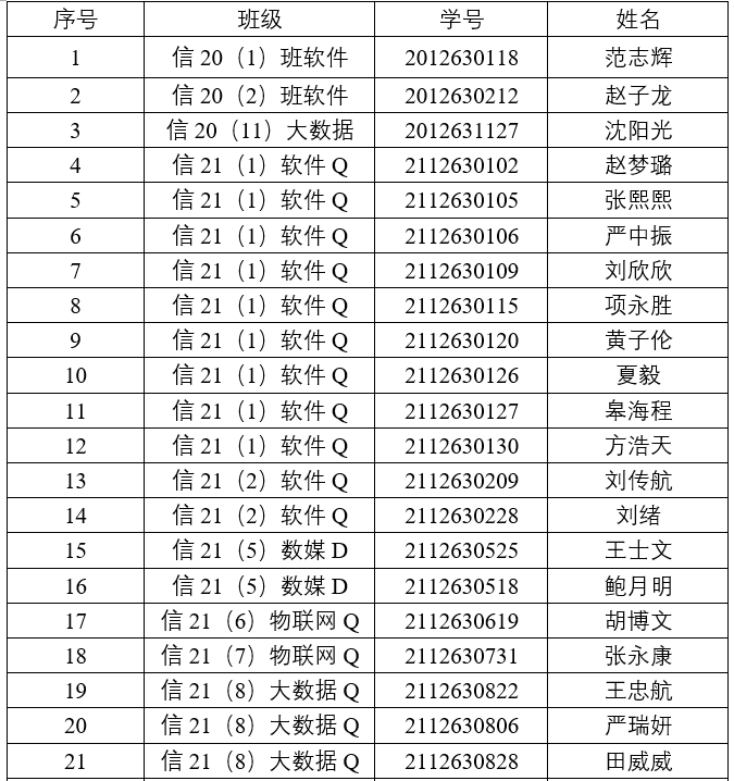 根据《中国共产主义青年团章程》中对发展团员的要求及《发展团员工作细则》有关规范,严格落实推优入团、积分入团、评议入团等制度,按照公平、公正、公开的原则、经个人自愿申请、团课培训及考核、志愿服务时长考核、班主任意见征询、群众意见征集等环节,学院团委评审商议决定,拟确定范志辉,赵子龙等50名同学为新增发展团员,现予以公示: