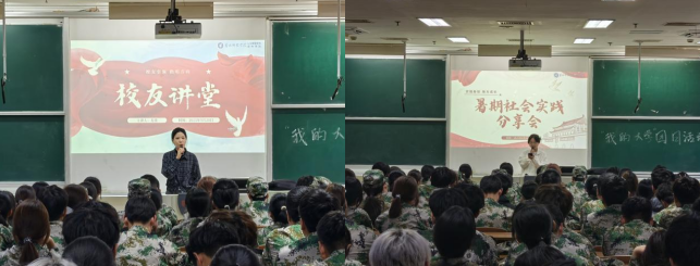 “纸上得来终觉浅,绝知此事要躬行”。社会实践是连接校园和社会的桥梁,在暑期社会实践分享环节,陈可、孙文静、李婧依次分享了他们在企业实习、社区服务、政务实践等地的实践经验。同学们一致表示,社会实践不仅提升了专业应用与组织协调能力,更让他们体会到学以致用、服务社会的价值感,引发新生广泛共鸣。