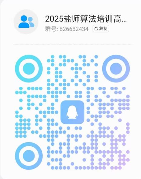 报名请加QQ群(扫下方二维码):群号:826682434,群名:2025盐师算法培训高级班。